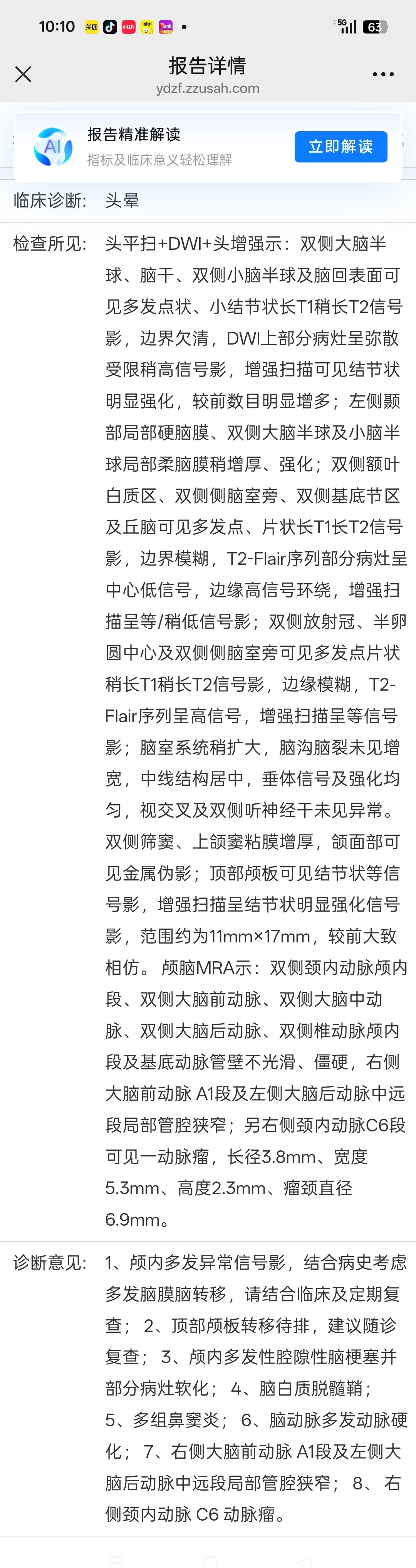 谢谢闯关老师,我们医生说检查到有几个转移灶,具体多少也没数。脑膜和脑实质转移是医生肯定说的