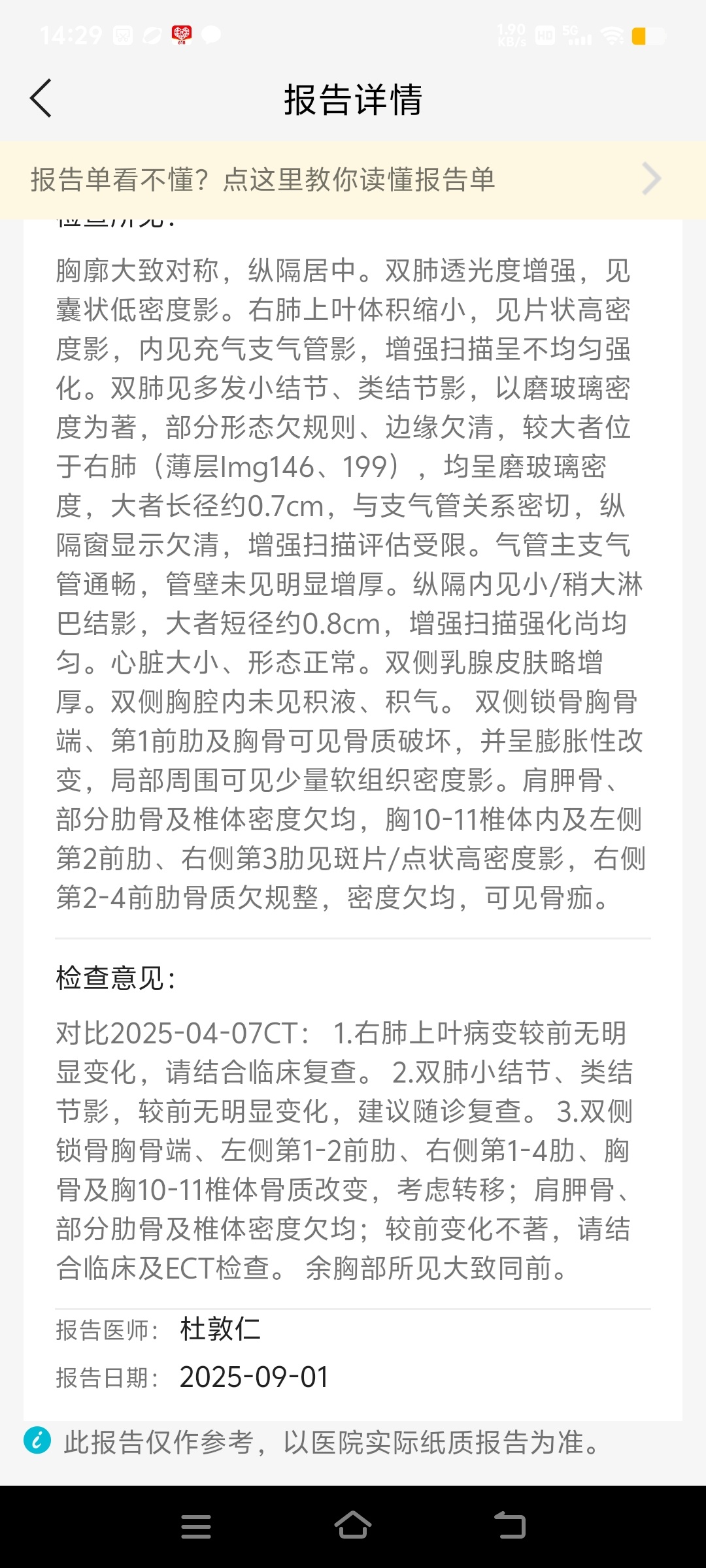 申医生 发表于 2025-09-05 19:17 影像报告看没有进展,这种情况下考虑有隐匿进展,只要肿瘤不长起来就不要命,可以继续观察,如果特别焦虑,身体状态允许可以考虑联合化疗