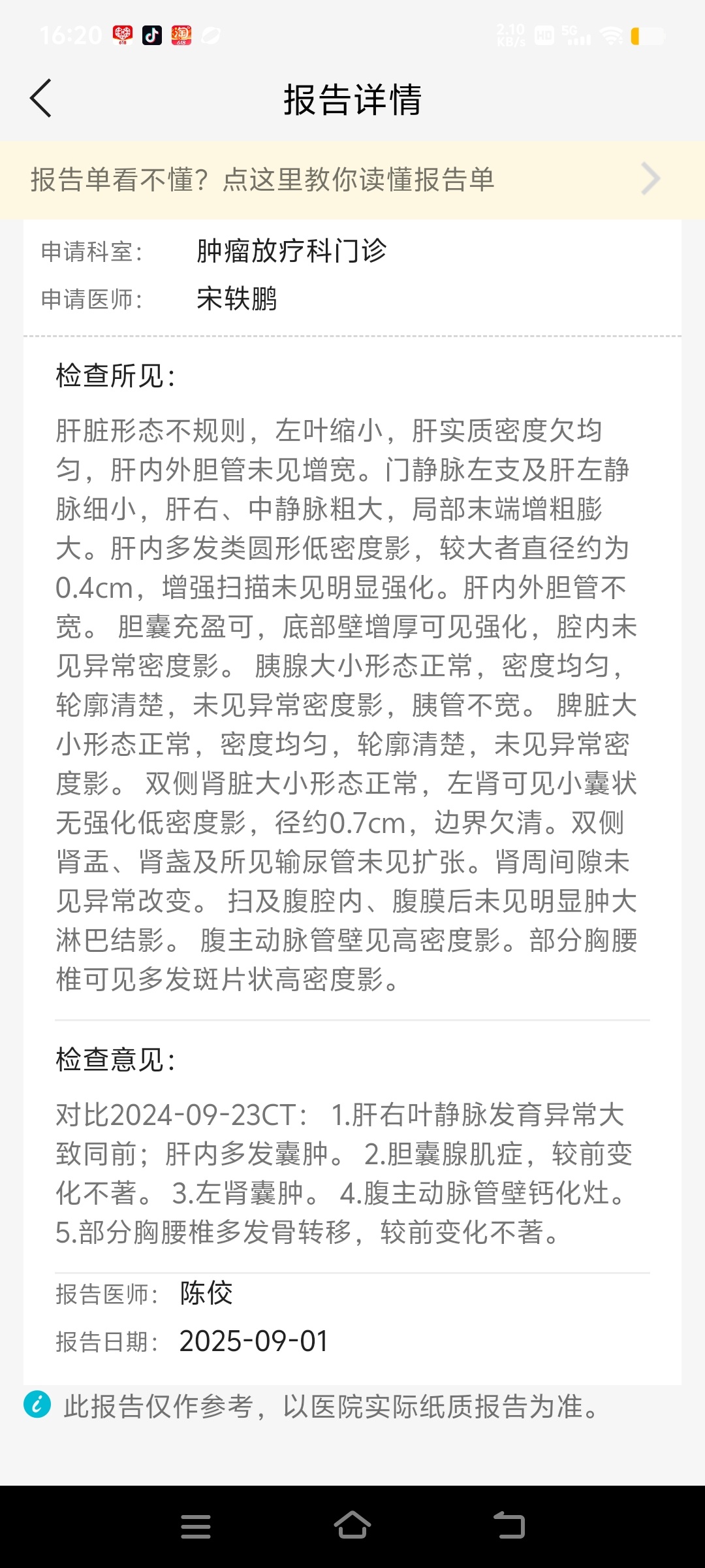 阳光~ 发表于 2025-09-02 09:43 影像为主,肿标仅参考,结合用药时间和体感综合判断,如果到了平均耐药期,体感也开始有点不好,结合肿标,可以尝试穿插化疗,一种药用到彻底耐药有点太亏,特别是现在多数都是一线三代