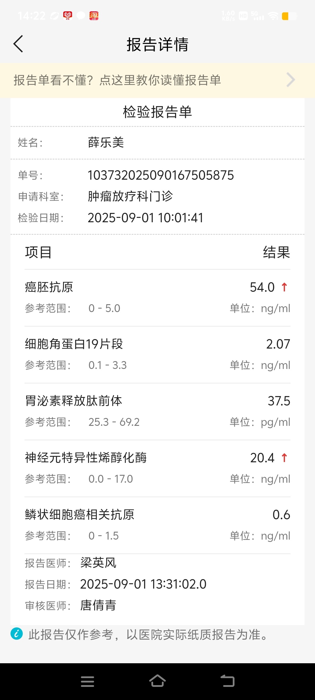 keenman 发表于 2025-09-05 16:19 肿瘤标记物受影响的因素比较多,不过从你家的这个变动趋势上看,是在不断的升高,从一个角度提醒很可能肿瘤在进展,只不过还没表现在影像上。但由于现在评价肿瘤进展都是以影像为准,这个时候密切关注,结合临床体感,及时进行影像复查。目前暂时不用更换治疗方案